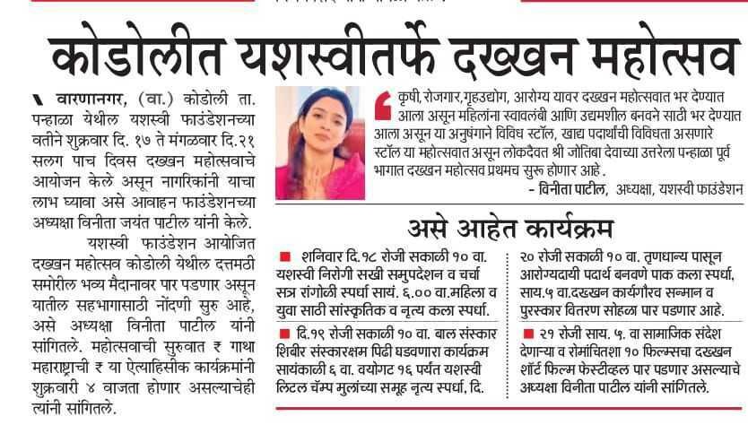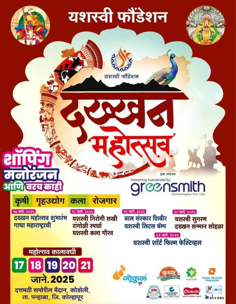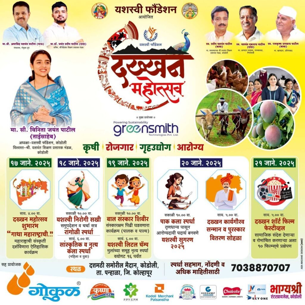 दख्खन महोत्सव 2025 हा यशस्वी सोशल वेल्फेअर फाऊंडेशनच्या वतीने आयोजित भव्य कार्यक्रम असून, यामध्ये विविध क्षेत्रांतील उपक्रमांचे दर्शन होणार आहे. या महोत्सवाचे उद्दिष्ट समाजातील विविध घटकांना एकत्र आणून आर्थिक, सांस्कृतिक आणि सामाजिक योगदानाला चालना देणे हे आहे. या महोत्सवात पुढील गोष्टींचा समावेश असेल: